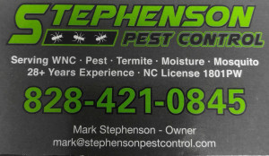 Stephenson Pest Control is the name trusted for pest control services in and around Waynesville and Canton, NC. This family-owned and operated company was established to provide honest and quality pest control services to the people living in the Western North Carolina area. Our reputation has garnered us with a focal point for providing dependable, cost-effective pest control services to residential and commercial customers around the area.